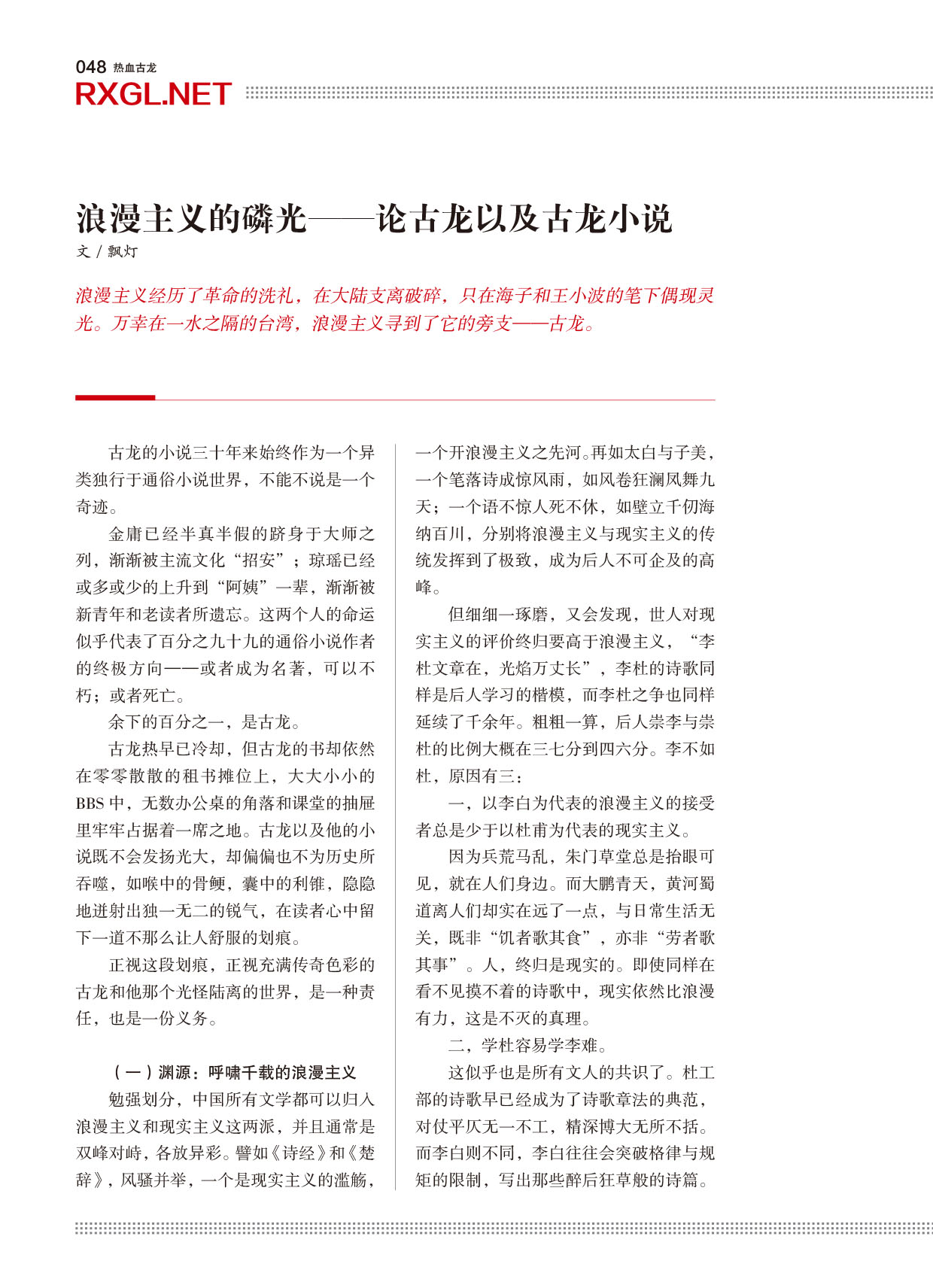 飘灯|浪漫主义的磷光──论古龙以及古龙小说
