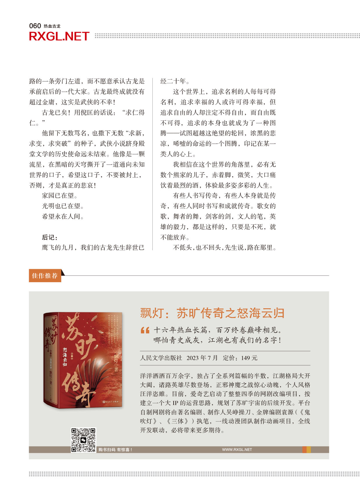 《热血古龙》第1期名家贺词
